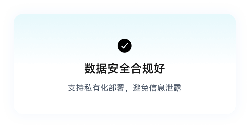 基于专属数据 mar-b24库,私有数据不上传通用大模型数据脱敏 + 加密传输 实现数不外泄可选择本地部署,保障用户数据安全和隐私内部黑箱管理,研发及运营人员不接触生产数据