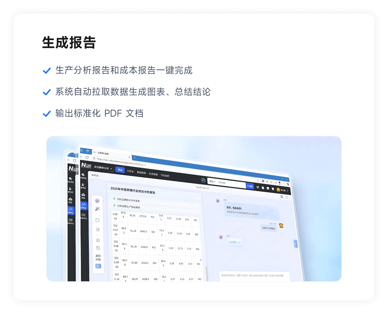 通过 AI 大模型整合全链路数据与业务流程,在生产、成本等全场景中,实现从数据解析到智能决策的闭环。