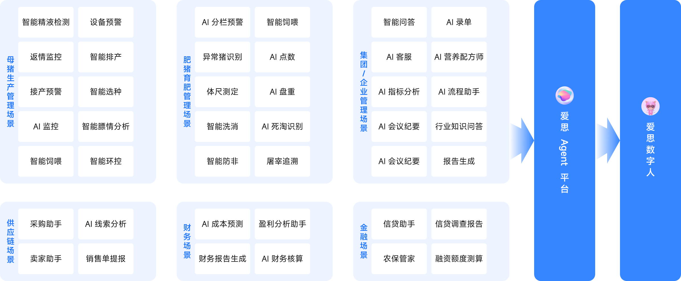 生产管理与预警、疫病辅助诊断与防控、价格行情分析与预测、采销智能匹配与决策