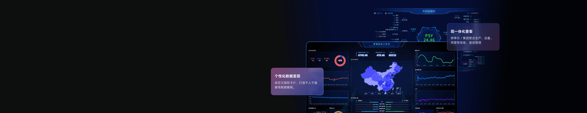 · 一体化查看: 跨单位 / 集团整合生产、设备、预警等信息,提效管理。