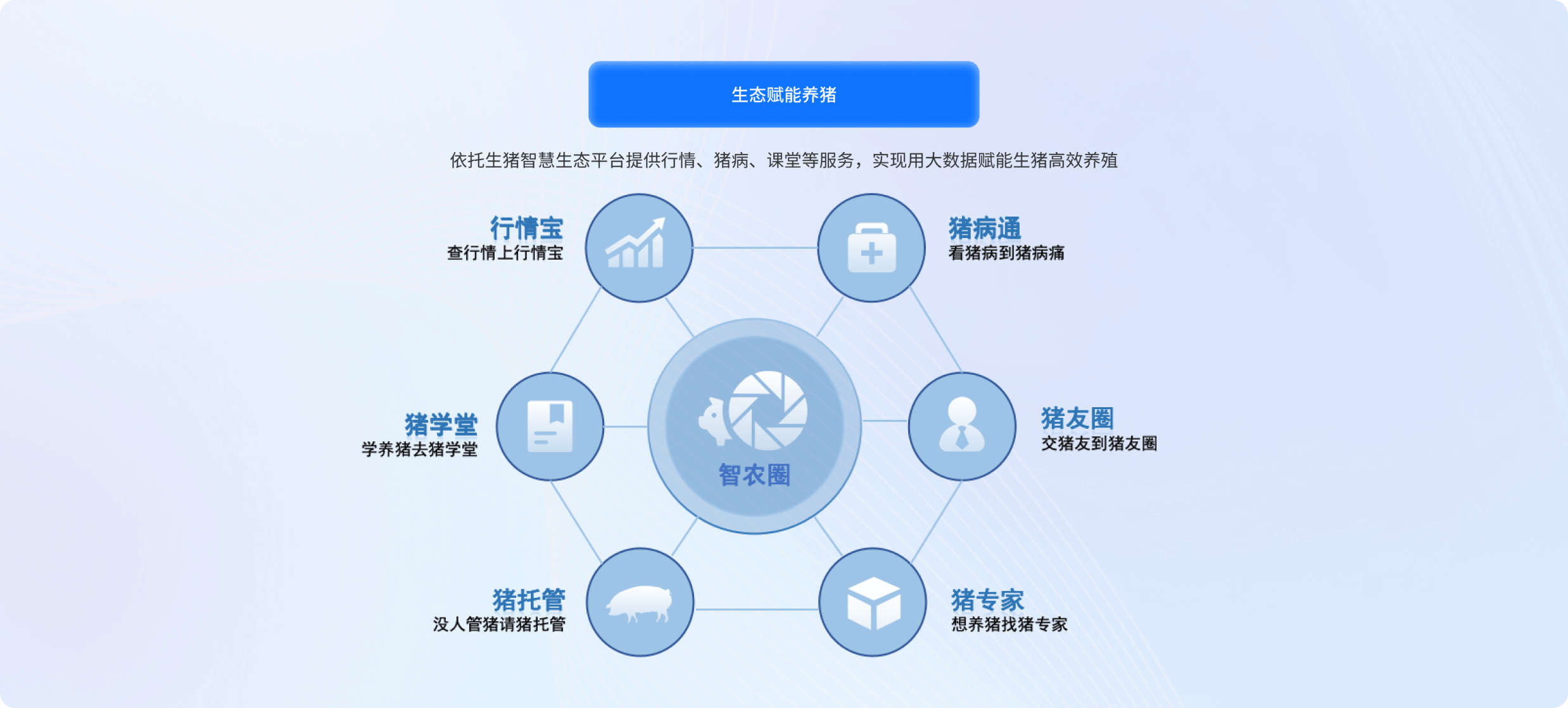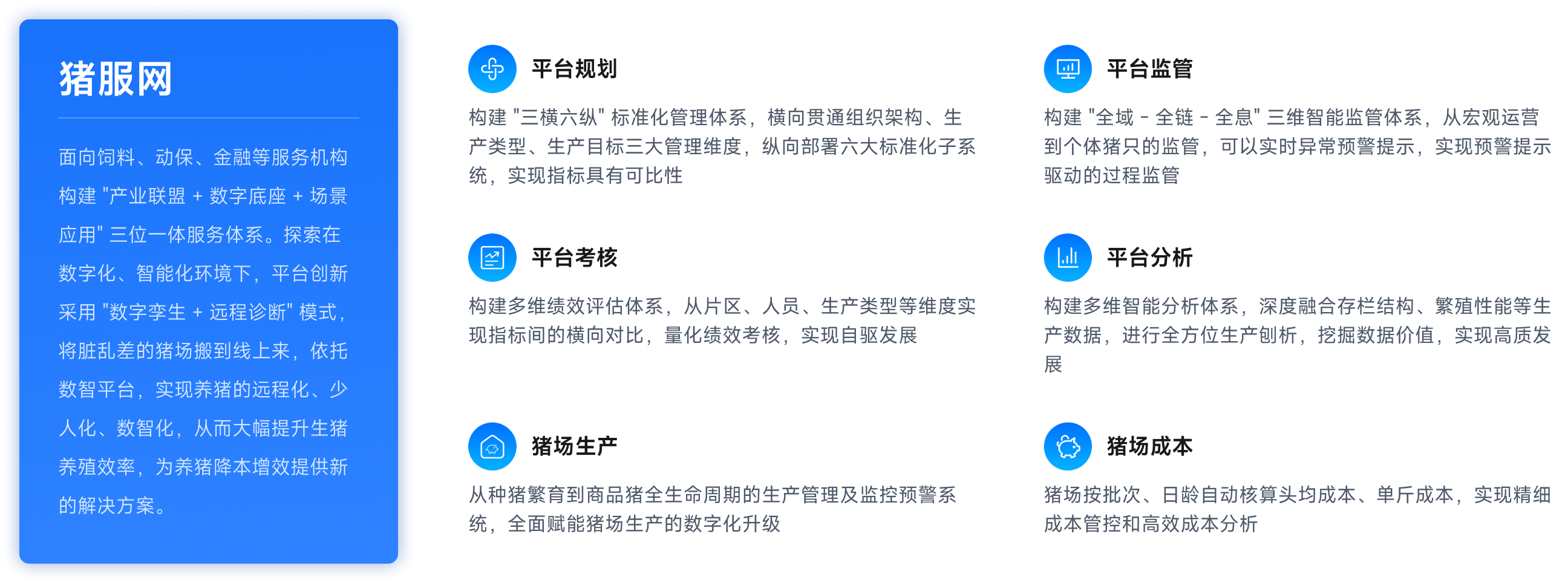 面向饲料、动保、金融等服务机构构建 "产业联盟 + 数字底座 + 场景应用" 三位一体服务体系。